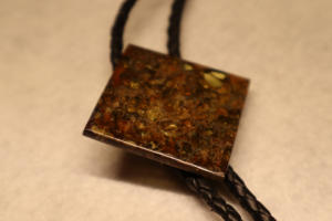 Bolotie ist eine Art von Kravatte die durch eine Spange zusammengehalten wird.Viereck ca. 38mm x 38mm Dicke ca. 2mm Scheibe aus einem PallasitPreis: 500,00€Ink. Mwst. zzgl.VersandkostenEinzelstück
